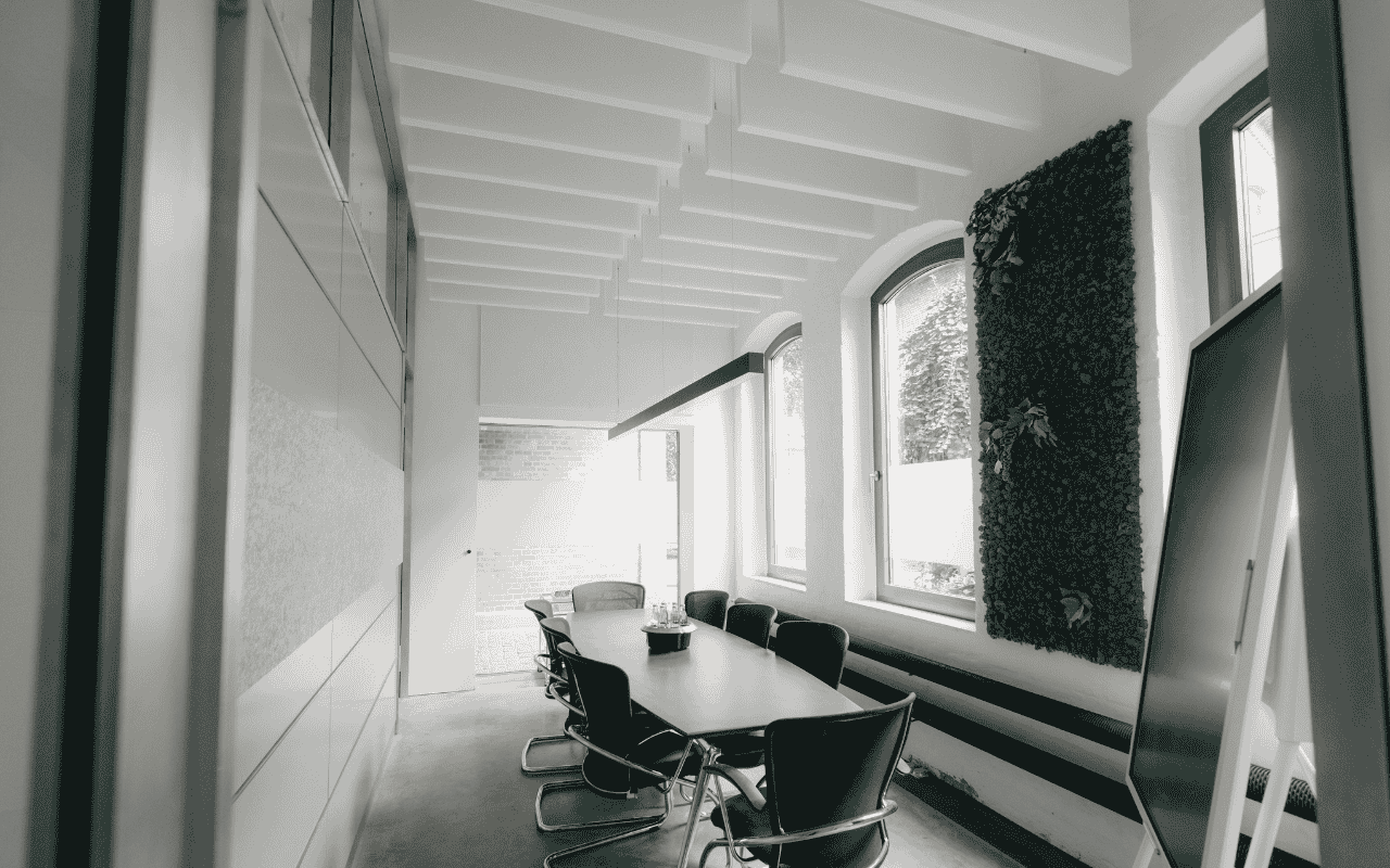 Das Ergebnis spürt man sofort: Die Nachhallzeit wurde um 48 % reduziert, der Schallpegel sank um 12 %. Die Sprachverständlichkeit stieg um 38 % – was sich direkt im Arbeitsalltag bemerkbar macht. Heute ist es so ruhig, wie der Name verspricht – ohne dass der Raum an Charakter verloren hat. Eine perfekte Symbiose aus Ästhetik und Funktionalität.